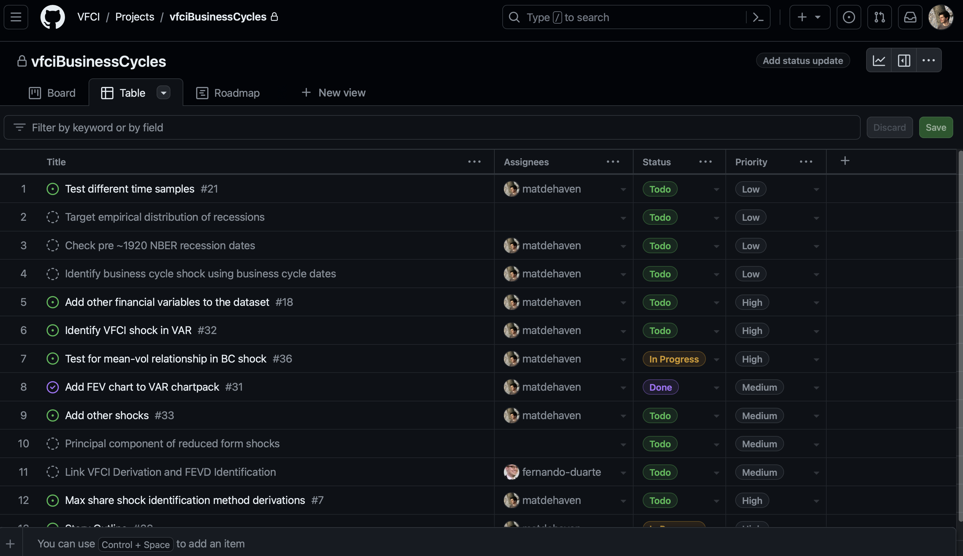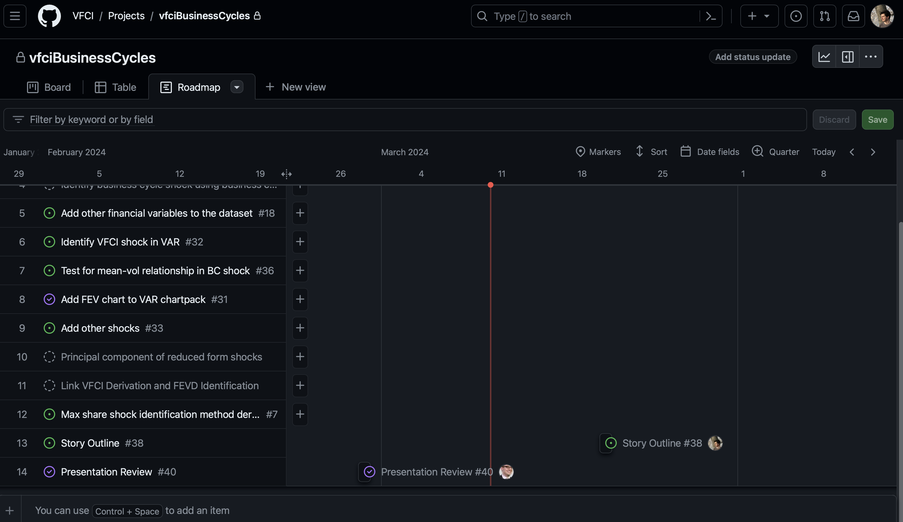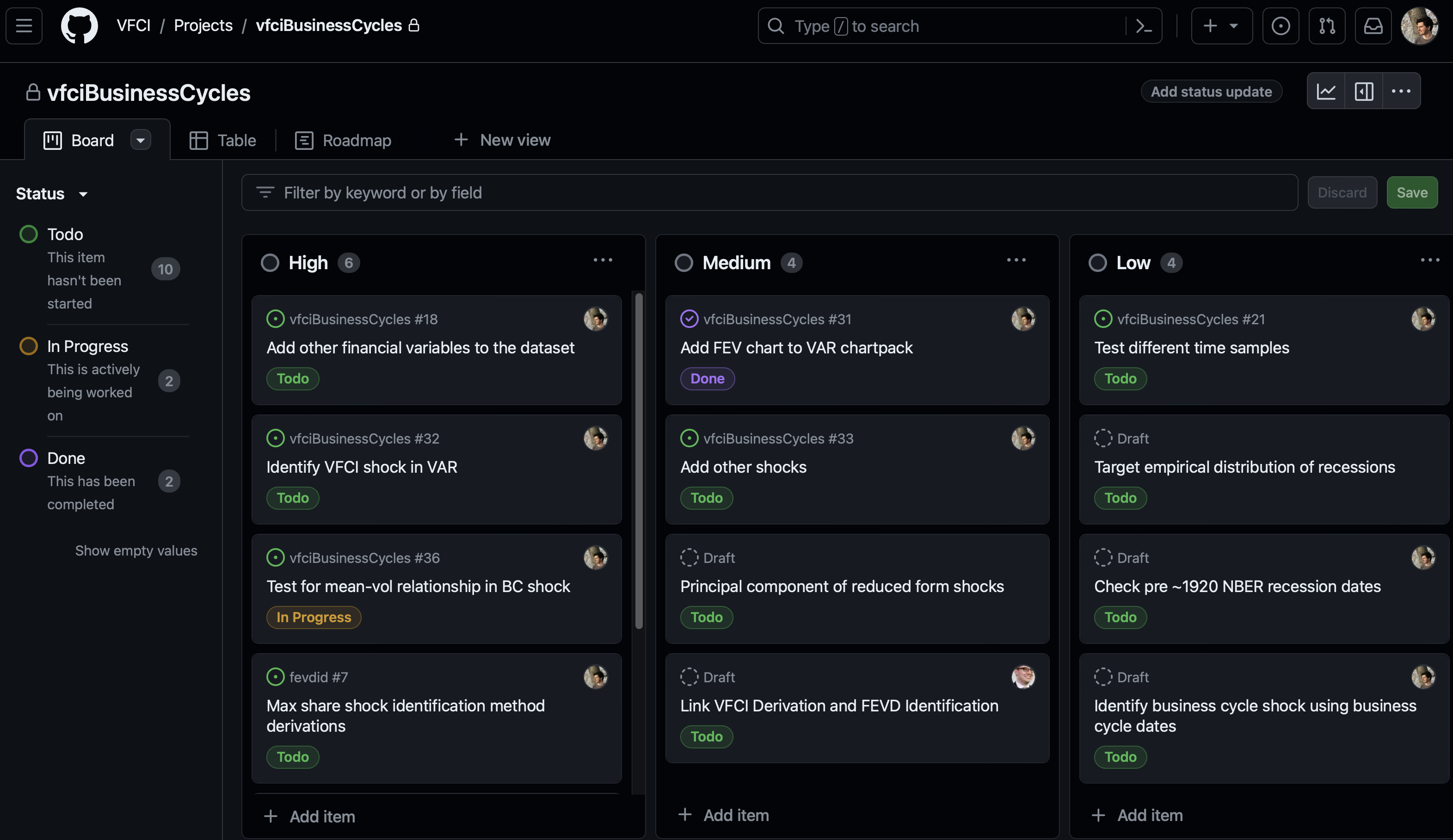 Sometimes, GitHub Issues will be enough, but for any big research project, I recommend trying to use GitHub Projects too.
