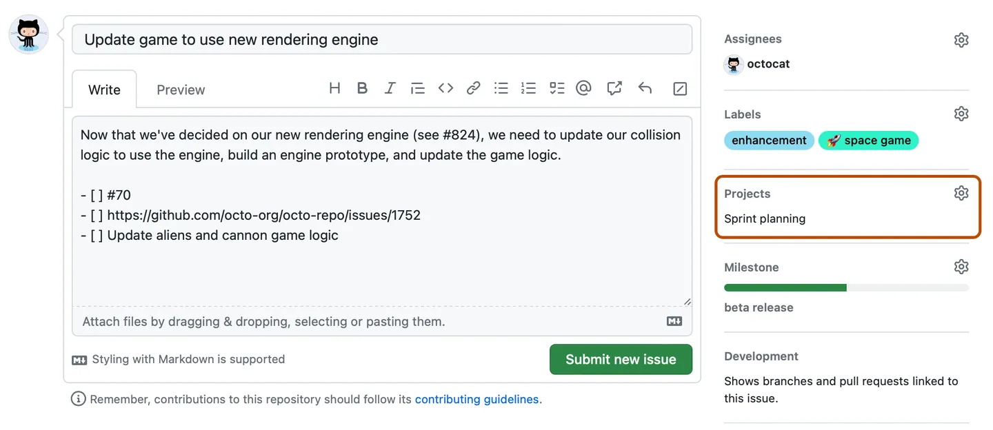 A project is an adaptable spreadsheet, task-board, and road map that integrates with your issues and pull requests on GitHub to help you plan and track your work effectively.