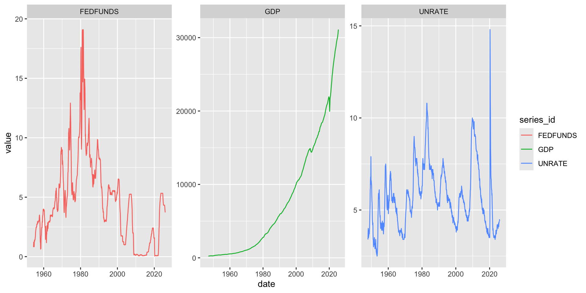 But luckily for us, someone has already written a package to make and parse requests to FRED!